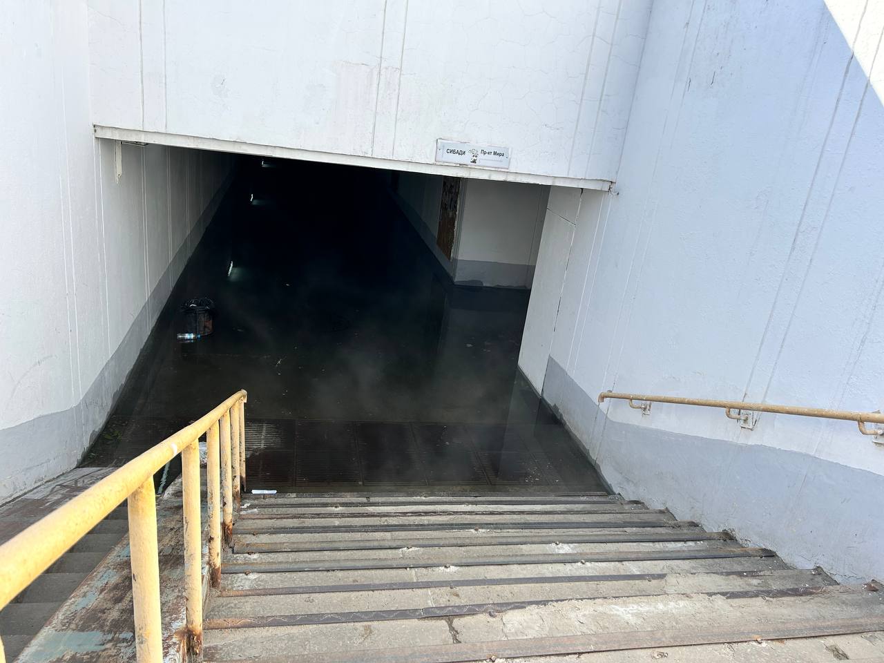 Местные жители сообщают, что вода в переходе стоит с субботы.