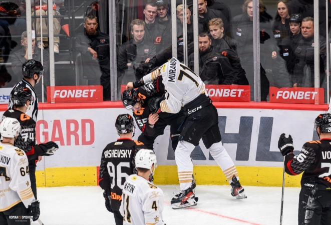 Матч получился зрелищным не только из-за обилия заброшенных шайб, но и благодаря двум дракам. Сначала на льду схлестнулись Джозеф Чеккони («Авангард») и Иван Муранов («Адмирал»). Затем эстафету спарринга перехватили вратари - подрались Андрей Мишуров и Адам Хуска. Все участники драк получили штрафы.