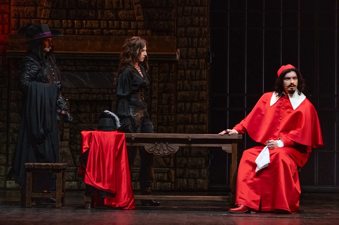 Тот же Людовик XIII, как и в экранизации Георгия Юнгвальд-Хилькевича в исполнении Олега Табакова, был жеманен и игрив. Но сыгравший короля Артём Савинов, любимчик завсегдатаев театра, был очарователен по-своему и не раз вызывал смех и овации зала. Кардинад Ришелье (Дмитрий Цепкин) и господин Бонасье (Сергей Дряхлов) также добавили комизма атмосфере постановки. Очаровательна была Констанция в исполнении Анастасии Загоруй. А когда героиня умирала на руках плачущего живыми слезами Д`Артаньяна, зал плакал вместе с ним и негодовал из-за коварства миледи. В целом, артисты смогли помочь зрителям абстрагироваться и воспринимать представленную историю о трёх мушкетерах по-новому.