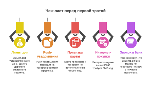Взрослый видит каждую покупку в приложении и может заблокировать карту за секунды.