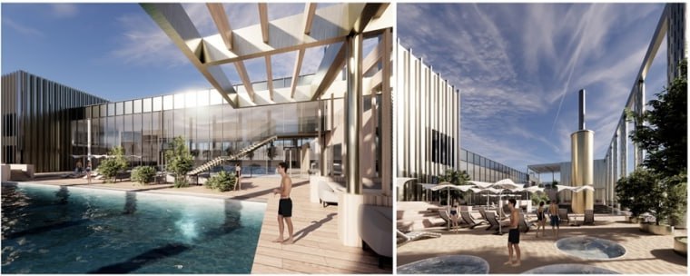 В трехэтажном здании разместятся парные, ресторан, фитобар, помещения для спа-процедур, зоны джакузи, террасы и несколько бассейнов. На уровне третьего этажа запланирован открытый бассейн на свежем воздухе.
