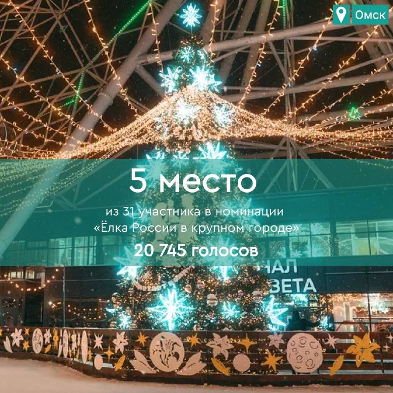 Ель из омского парка «Зеленый остров» стала пятой, набрав 20 745 голосов.
