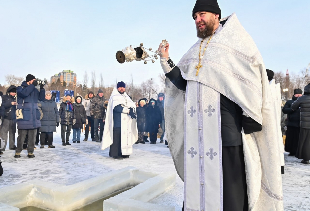 В парке прошел Крестный ход, после которого митрополит Омский и Прииртышский Дионисий провел обряд освящения воды. На берегу разместили часовню, мобильную баню, палатки для переодевания. Для обогрева всех желающих угощают горячим чаем.
