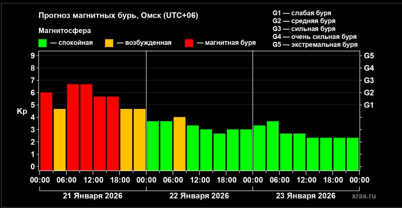 Следующие магнитные бури ожидаются в Омской области 26 и 27 января.