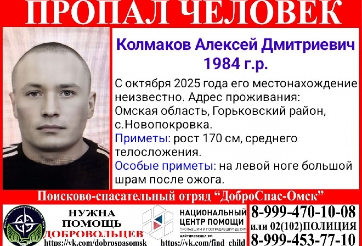 Поисковый отряд «ДоброСпас-Омск» объявил поиски Алексея Комлакова 1984 года рождения. Мужчина перестал выходить на связь с октября 2025 года.