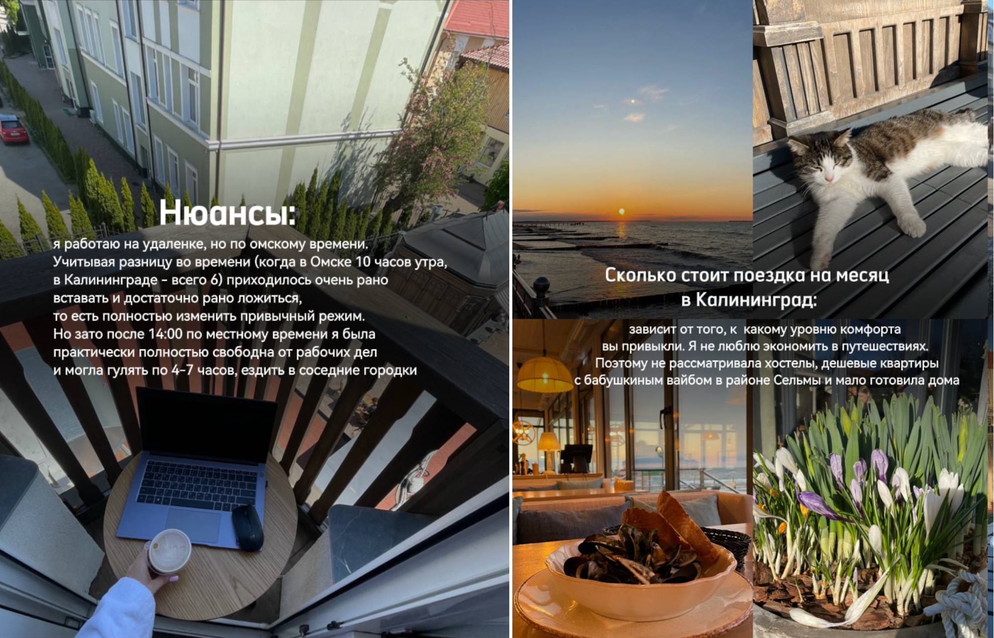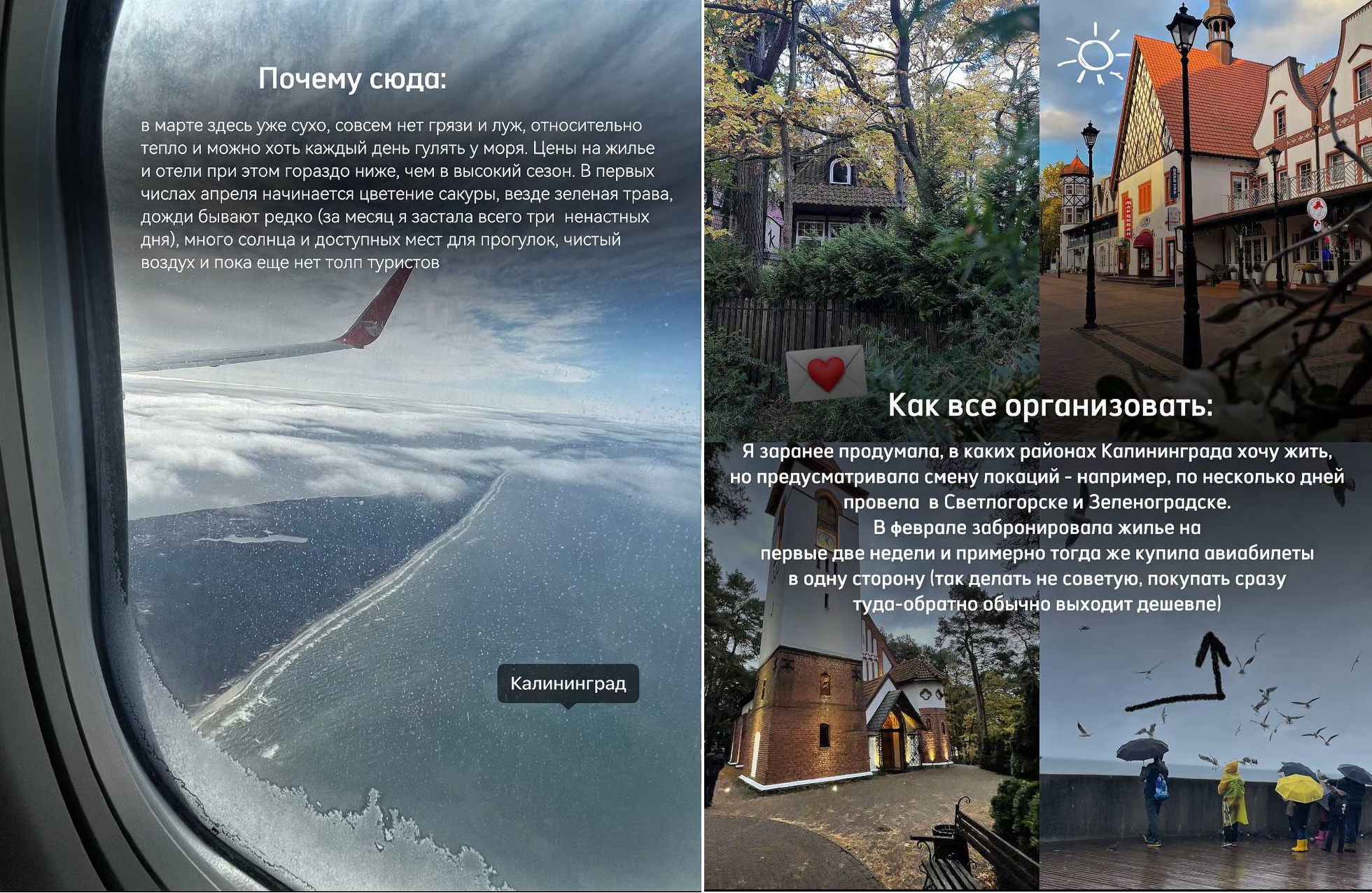 Девушка поделилась с нами своим опытом «весновки» в самом западном регионе России. Смотрите на карточках ее рассказ о том, как это организовать и сколько все будет стоить. Примечание - она трудится на удаленке, поэтому в поездке продолжала выполнять свои обычные рабочие функции.