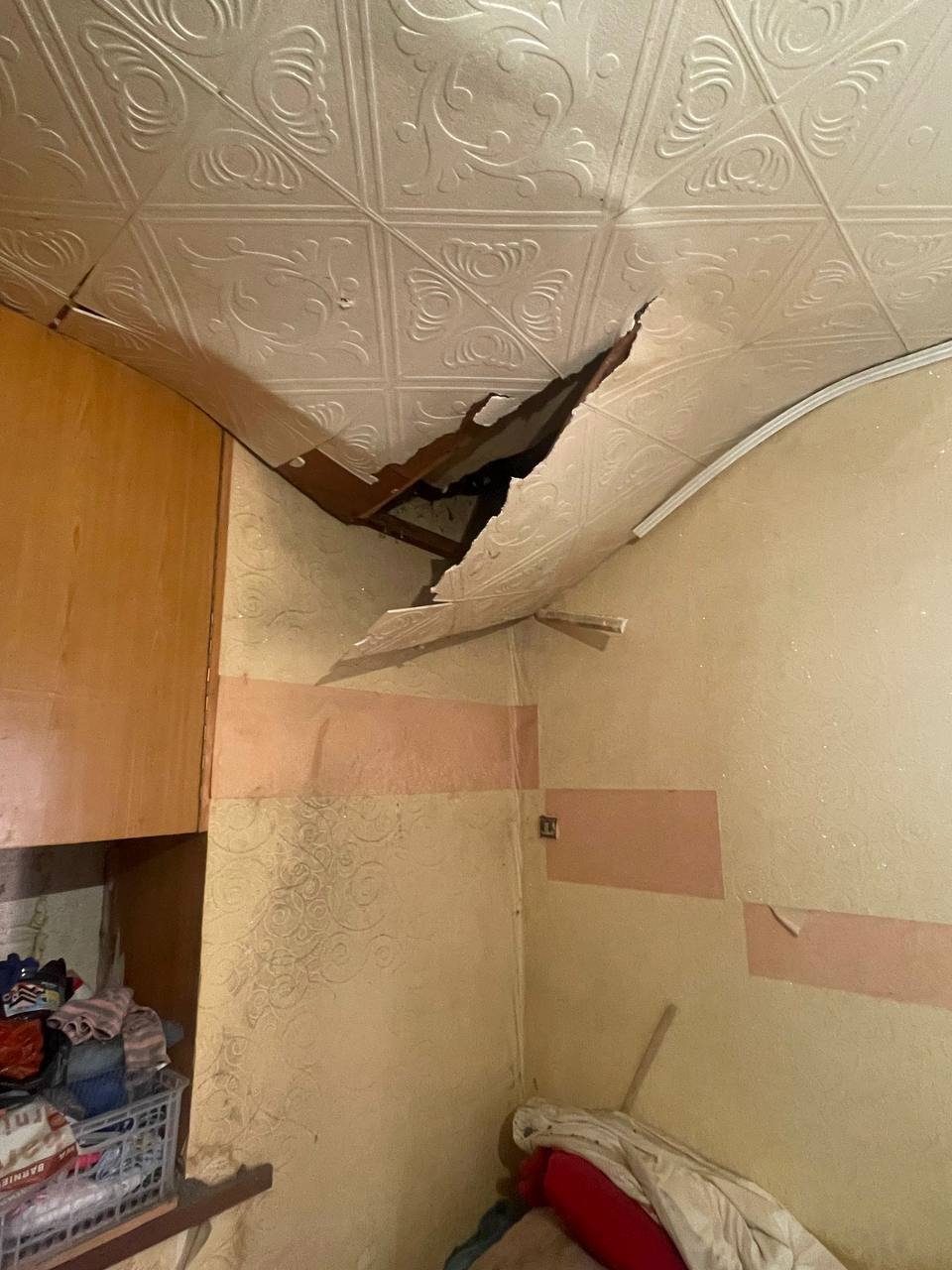 В квартире, где произошло обрушение, проживает престарелая женщина. Отмечается, что администрация бездействует.