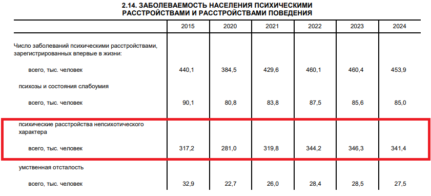 Данных по психическим расстройствам за 2025 год пока в открытом доступе нет.