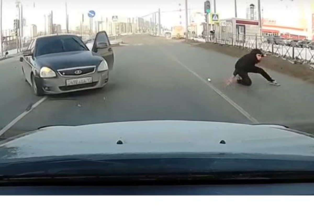 После столкновения мужчина вылетел из автомобиля через открытую дверь прямо на дорогу. Несмотря на происшествие, пострадавший моментально поднялся на ноги и сумел избежать столкновения с другим автомобилем, двигавшимся в его направлении.