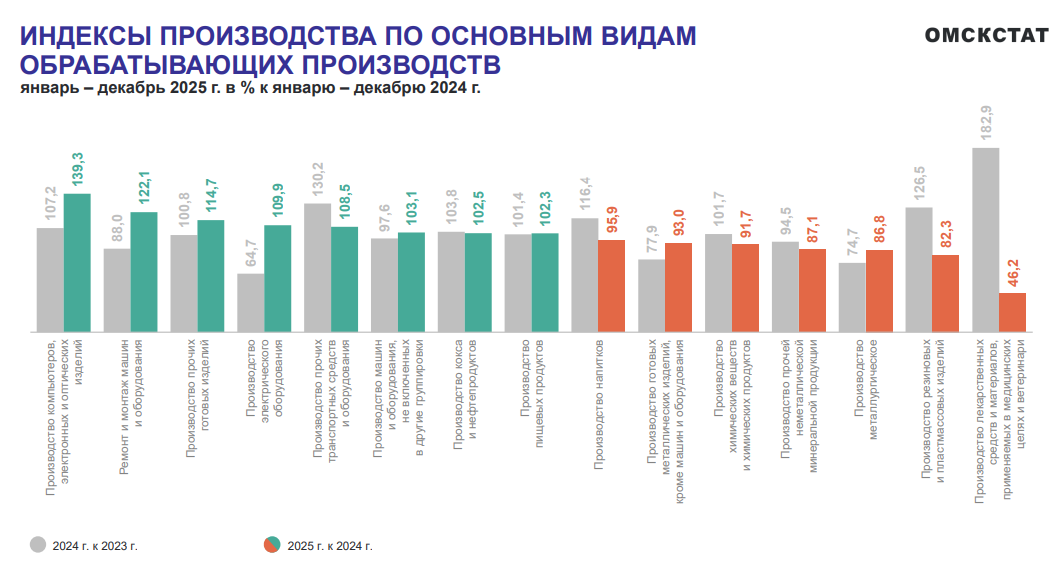 На сайте Омскстата опубликовали информацию о промышленном производстве в 2025 году. Статистики отмечают рост на 2,8% по сравнению с предыдущим годом.