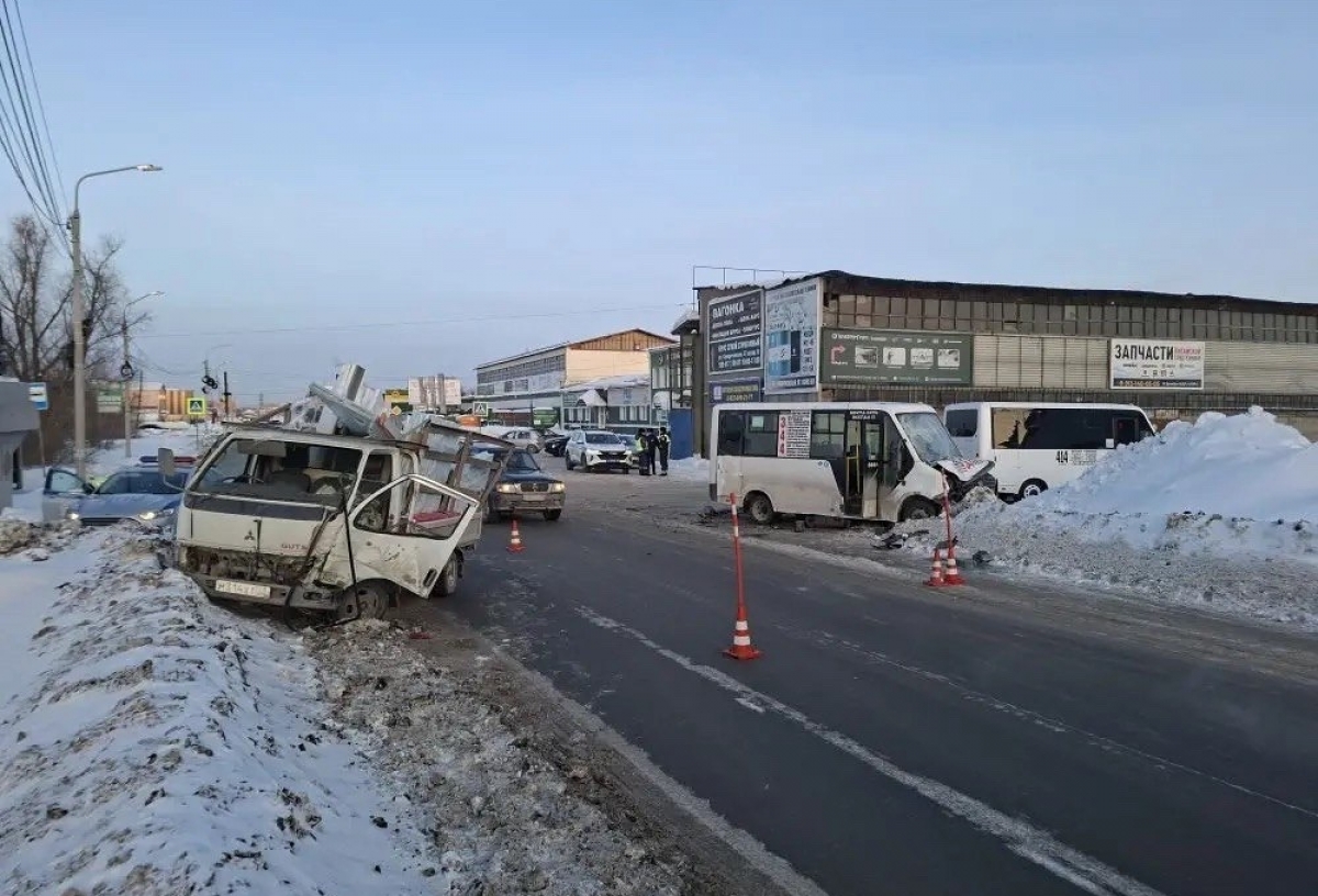 Накануне в Омске произошло серьезное ДТП с участием грузовика и пассажирского микроавтобуса.