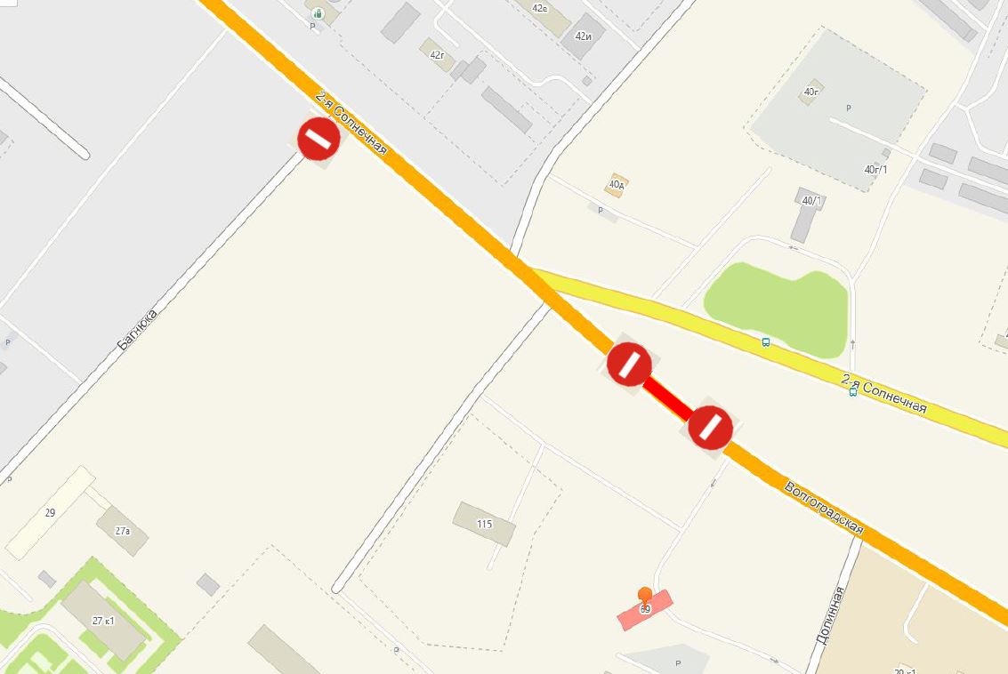 Объехать перекрытые участки можно по улицам 2-я Солнечная, Коттеджная.