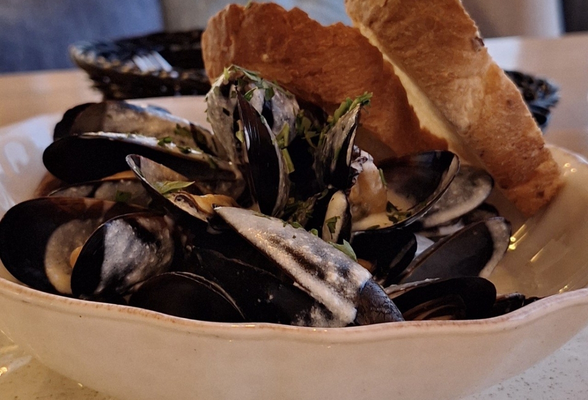 В основу меню входят мидии, креветки и другие морепродукты. В кафе представлены различные закуски, паста, супы, салаты, десерты, а также завтраки и детское меню.
