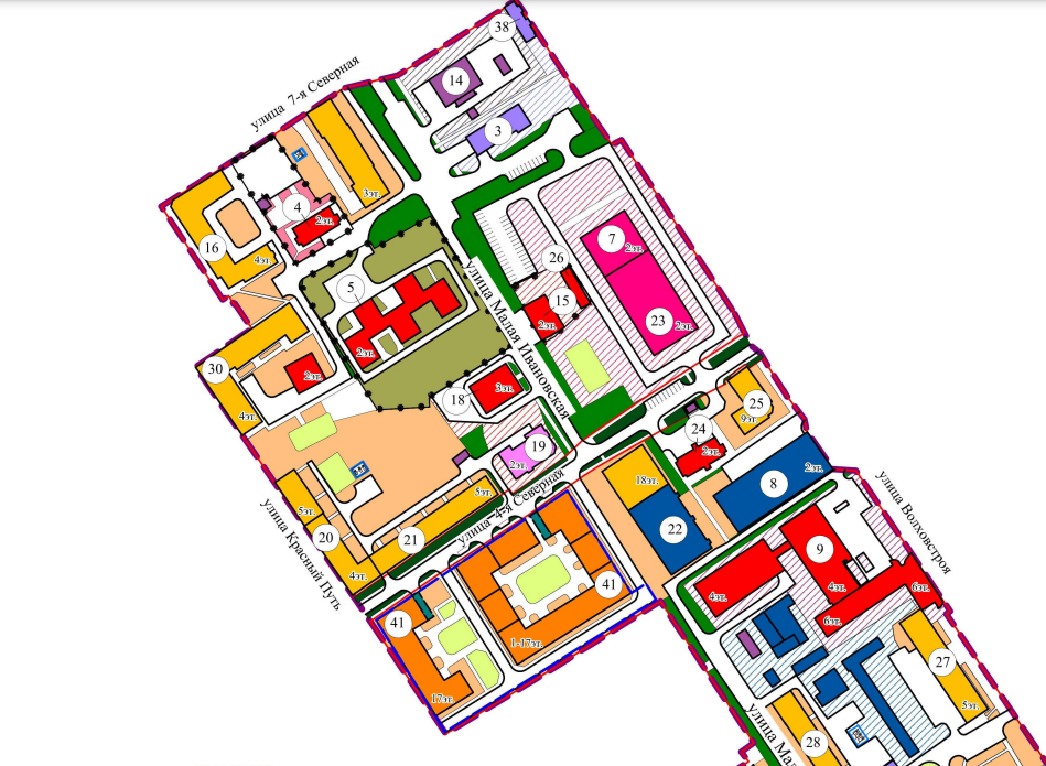 Как следует из эскиза, в границах Красного Пути, 4-й Северной и Малой Ивановской запроектированы два 17-этажных дома (на эскизе под №41). Их будут строить в две очереди. Высотку вдоль улицы 4-я Северная начнут возводить с третьего квартала 2026-го года по третий квартал 2031 года, а дом вдоль Красного Пути — с третьего квартала 2027-го года по третий квартал 2033-го года.