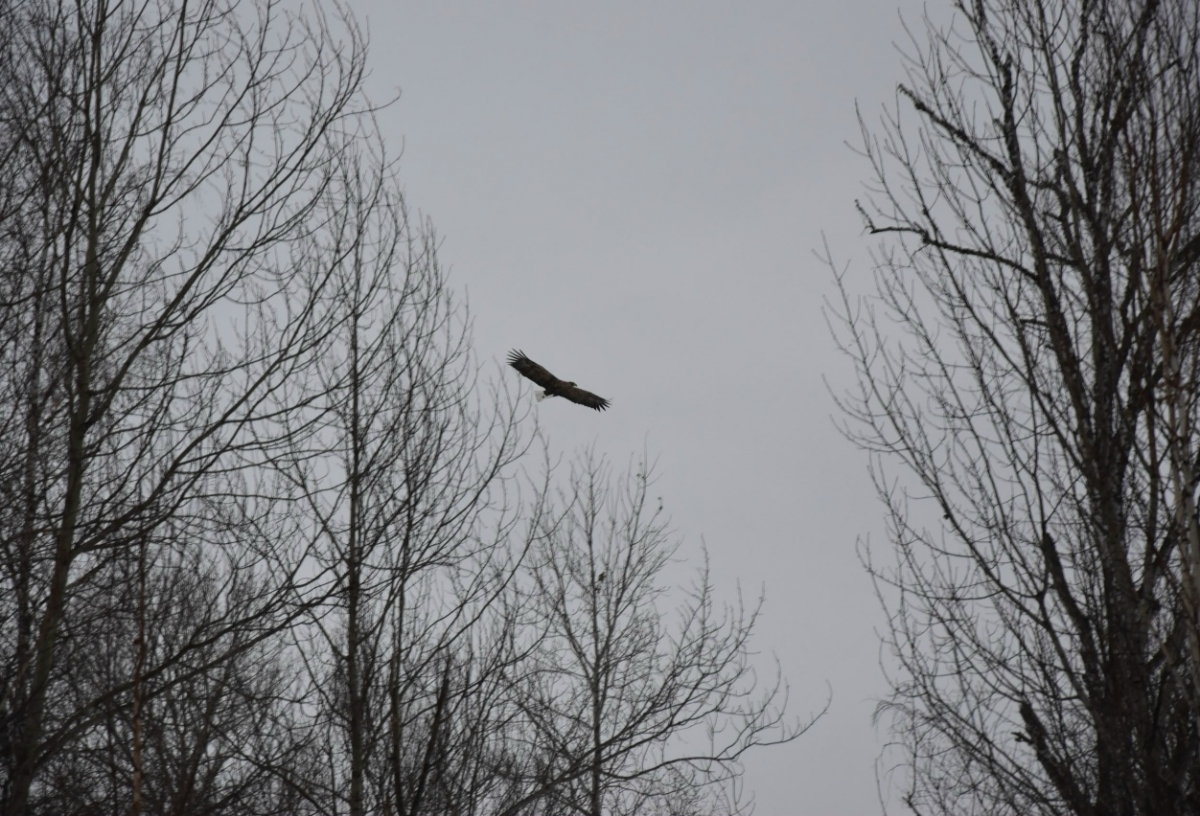 Инспектор в Седельниковском районе успел сфотографировать редкую птицу крупного размера. Он увидел в небе орлана-белохвоста.
