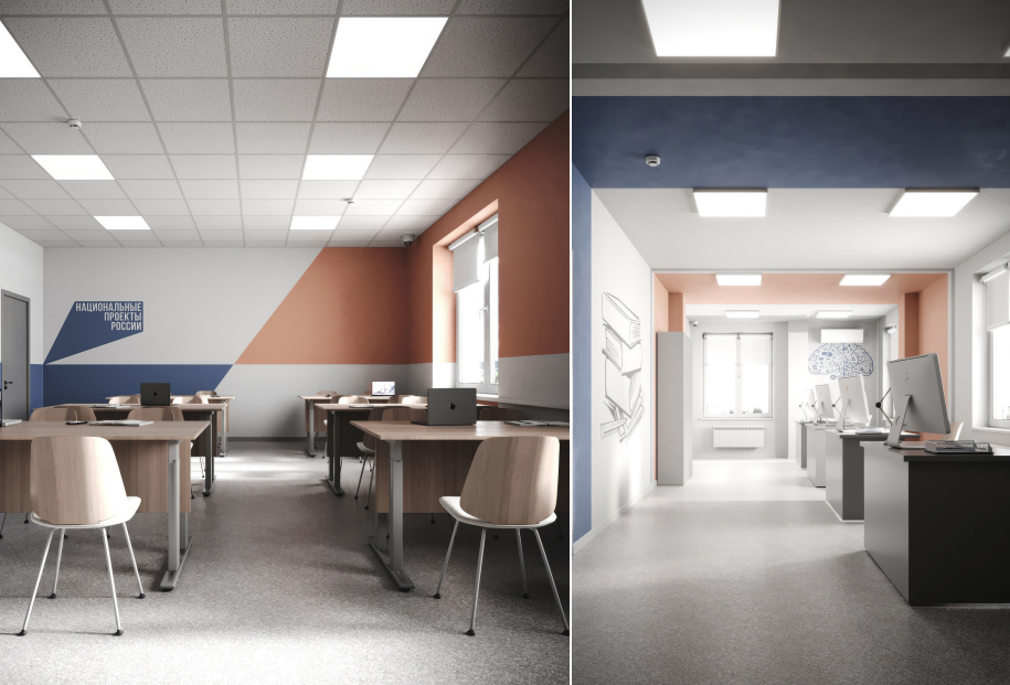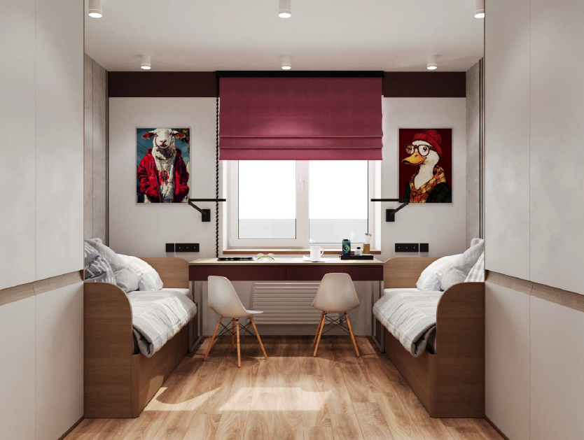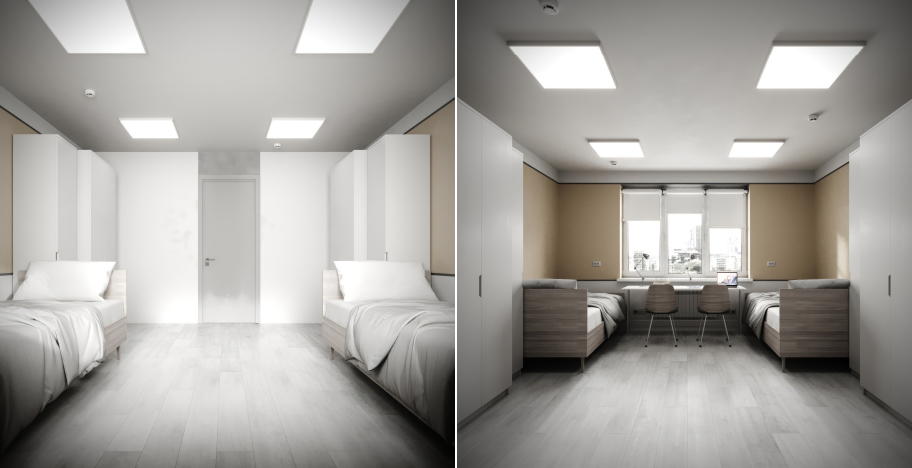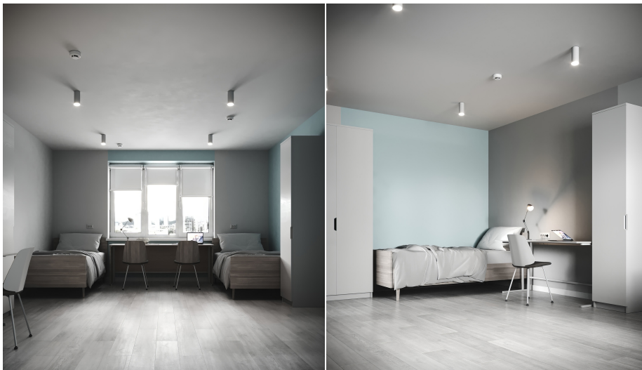 На эскизах показано, как вуз планируется оформить помещения общежития для своих студентов.