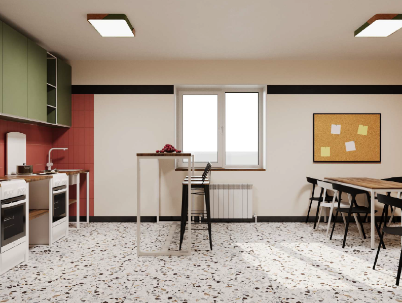 Опубликованы эскизы, как будут выглядеть комнаты, кухни, коворкинги в обновленных общежитиях.