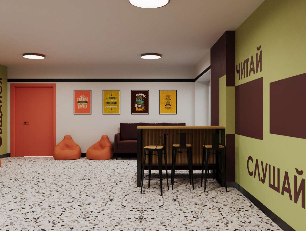 В документации представлены эскизные решения, как должны выглядеть комнаты студентов, кухни, гладильные, спортзал, коворкинг для занятий, холлы и другие помещения.