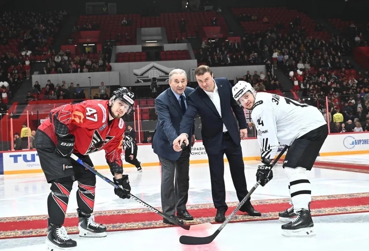 Кульминацией церемонии стало символическое вбрасывание шайбы, в котором приняли участие губернатор Виталий Хоценко, трехкратный олимпийский чемпион Владислав Третьяк, тренер молодежной команды «Омские Крылья» Никита Никитин и воспитанник Хоккейной академии «Авангард» Тарас Кузнецов.