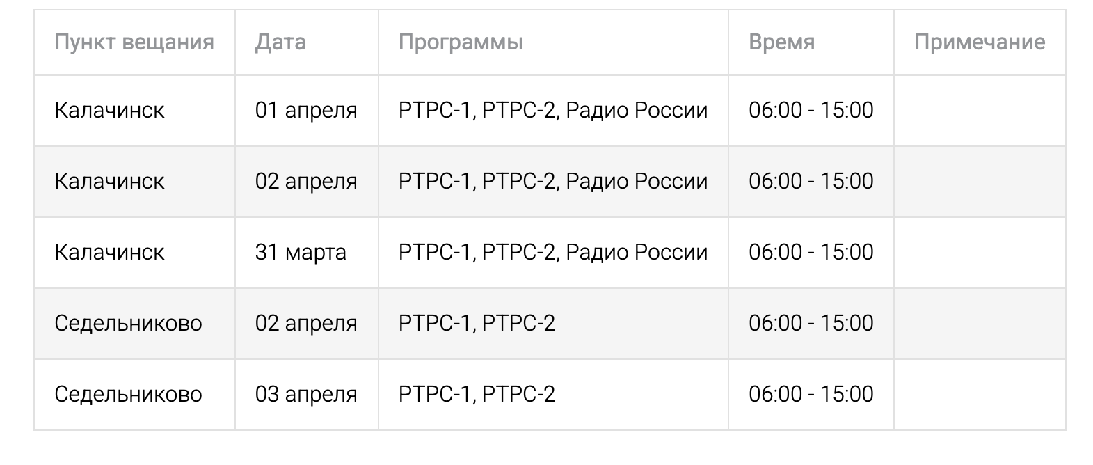 В указанные даты специалисты будут проводить профилактические или другие плановые работы, требующие отключения передающего оборудования.