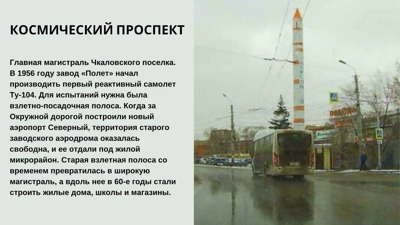 Больше всего космических названий улиц, пожалуй, в Кировском округе. На Левобережье есть проспект в честь летчика-космонавта Владимира Комарова, неподалеку - улица имени авиаконструктора, создателя самолета Ту-2 Андрея Туполева. В нескольких километрах отсюда — бульвар Космонавтов, дальше - улица в честь одного из основоположников космонавтики, советского инженера Юрия Кондратюка. В Старом Кировске — улицы имени летчика-космонавта Виктора Пацаева и второго советского космонавта Германа Титова.
