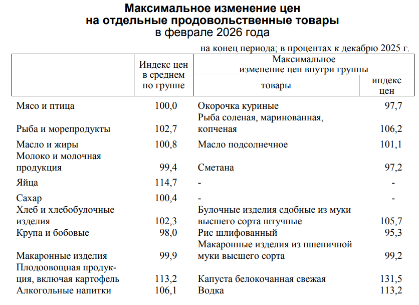 В лидерах подорожания к началу марта оказалась белокочанная капуста. Ее стоимость за два месяца увеличилась почти на треть. Яйца прибавили 14,7%. Водка стала дороже на 13,2% , а в целом цена на алкоголь поднялась на 6,1%. Подорожали также соленая и копченая рыба (на 6,2%) и сдоба (на 5,7%).
