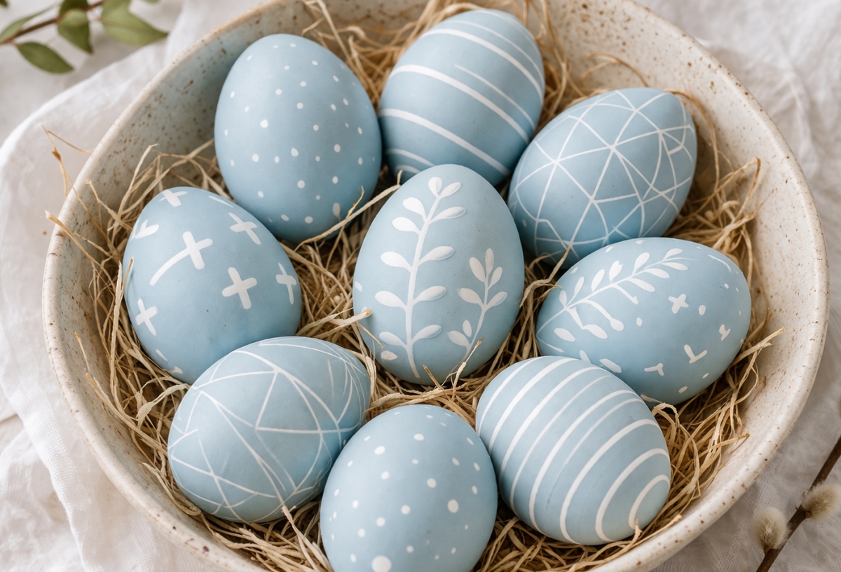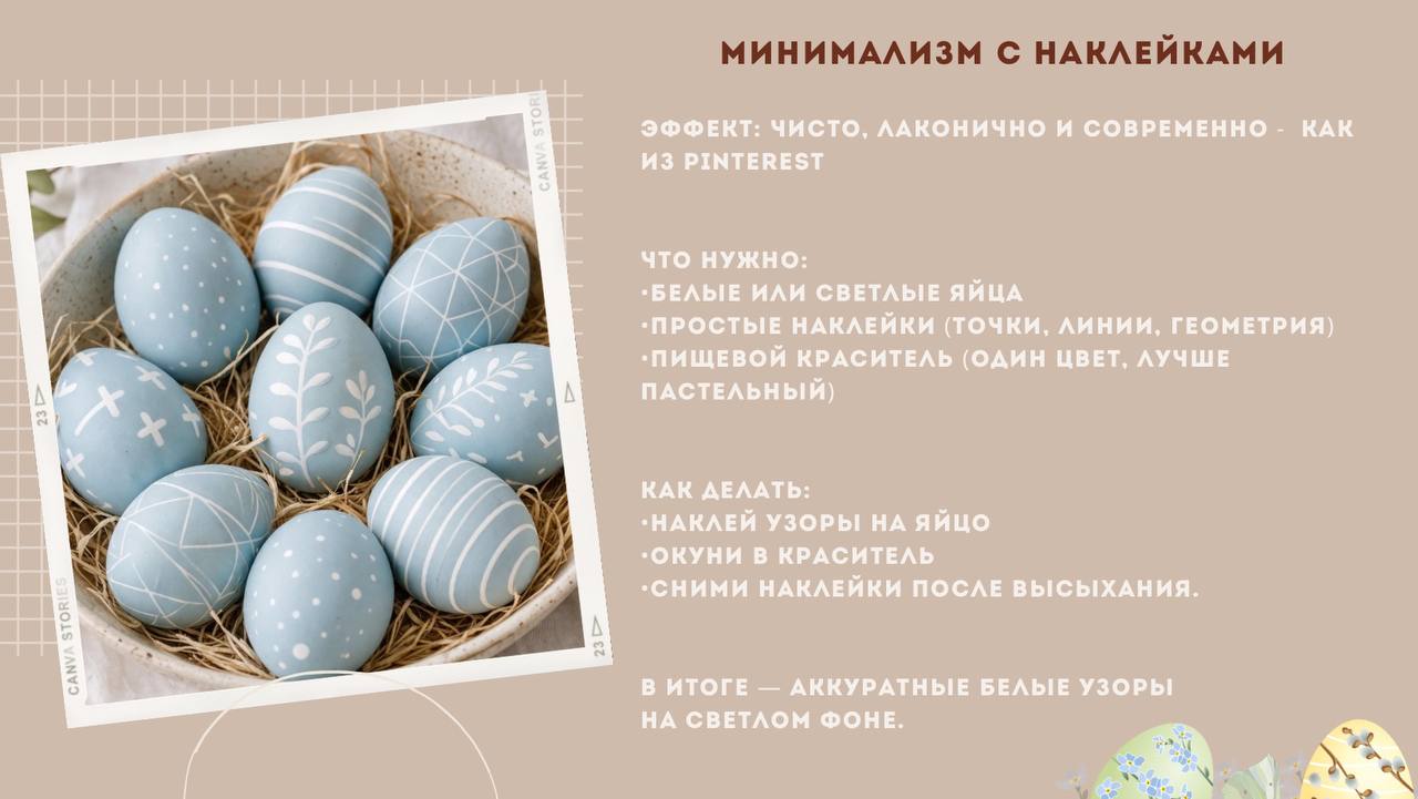 Собрали популярные техники окраски пасхальных яиц в стиле художника-минималиста.