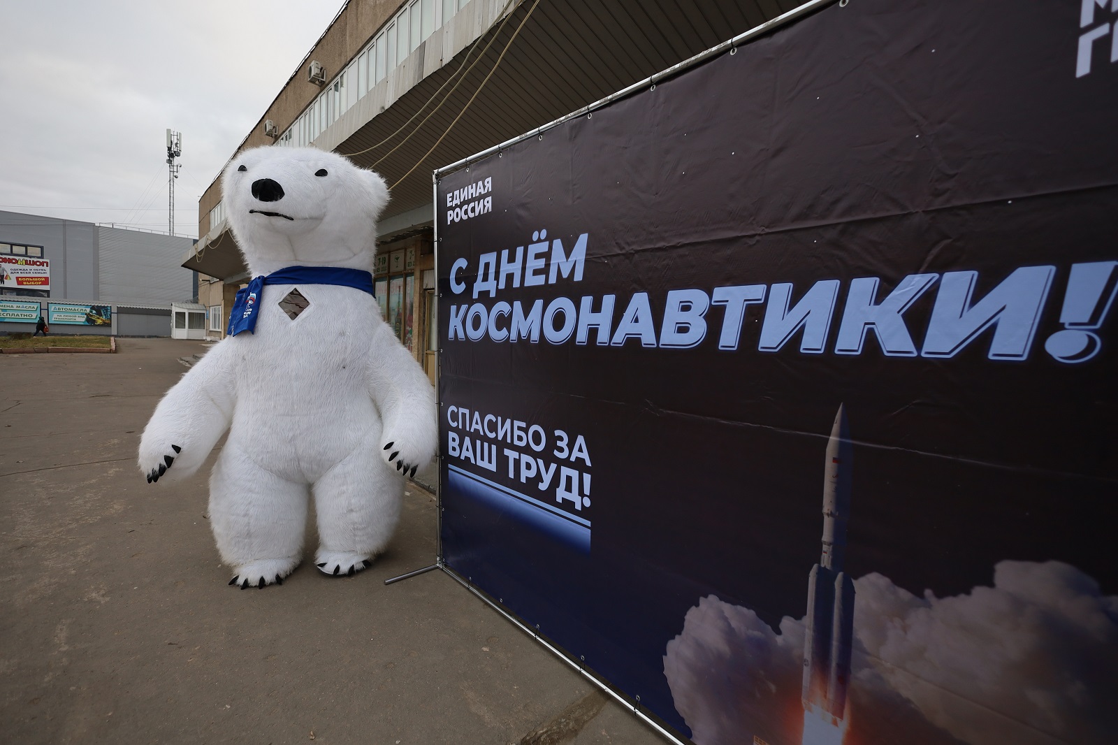На празднике звучали песни на космическую тему, в том числе композиции, посвященные ракете «Ангара». Работники предприятия также с удовольствием фотографировались с партийным мишкой у баннера, посвященного Дню космонавтики.
