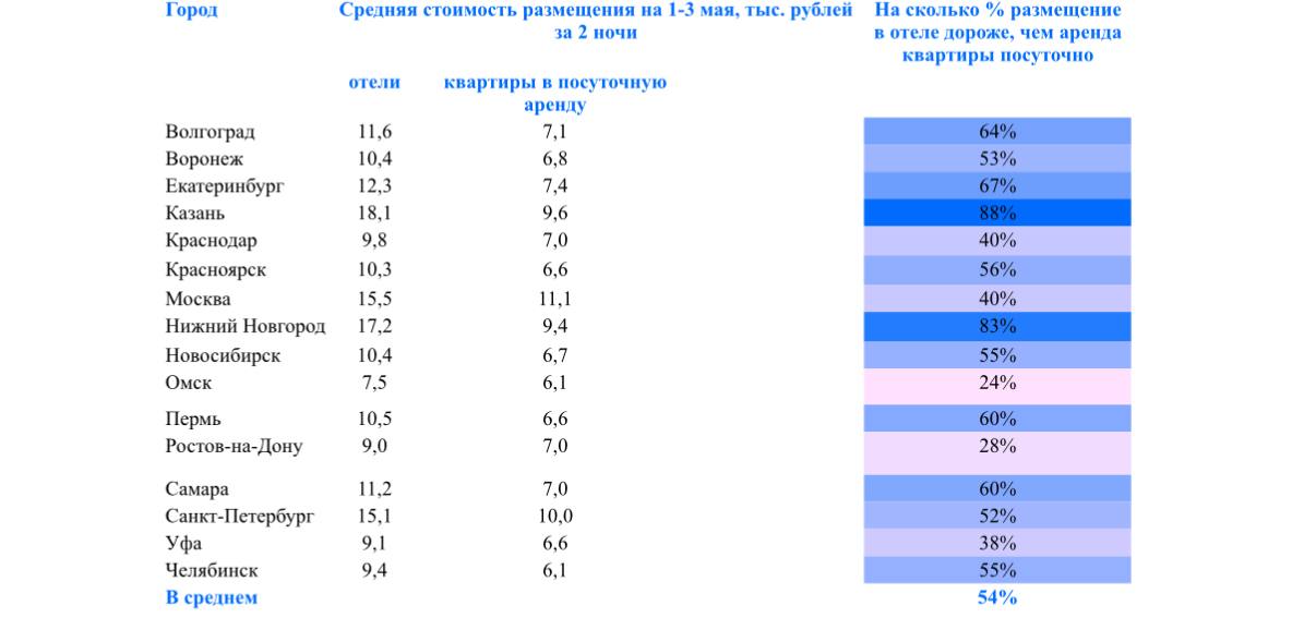 Разница в цене на майские праздники оказалась минимальной среди городов-миллионников.