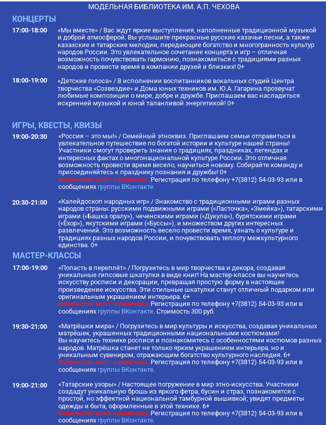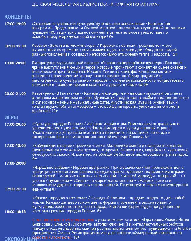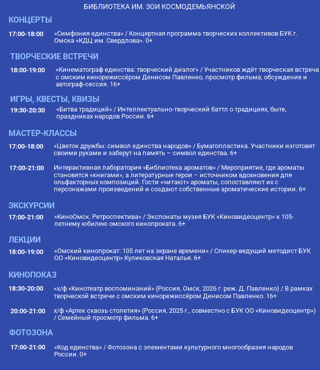 Ежегодная акция «Библионочь-2026» пройдет в Омске сегодня, 18 апреля, и будет посвящена Году единства народов России. Свои программы представят 10 муниципальных библиотек города. С 17:00 до 21:00 на площадках гостей ждут более 150 спектаклей, мастер-классов, концертов, лекций и игр.