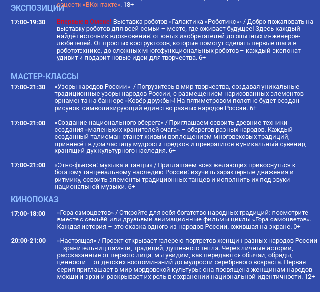 Для гостей акции приготовили дог-шоу, парфюмерную лабораторию, арт-встречи, кинопоказы, спектакли, концерты, лекции, игры.