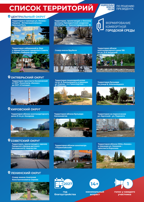 Об этом на пресс‑конференции, посвященной старту голосования, сообщили Василий Плешивых, начальник Управления формирования комфортной городской среды Министерства энергетики и ЖКХ Омской области и первый заместитель директора департамент городского хозяйства администрации города Омска Михаил Горчаков.
