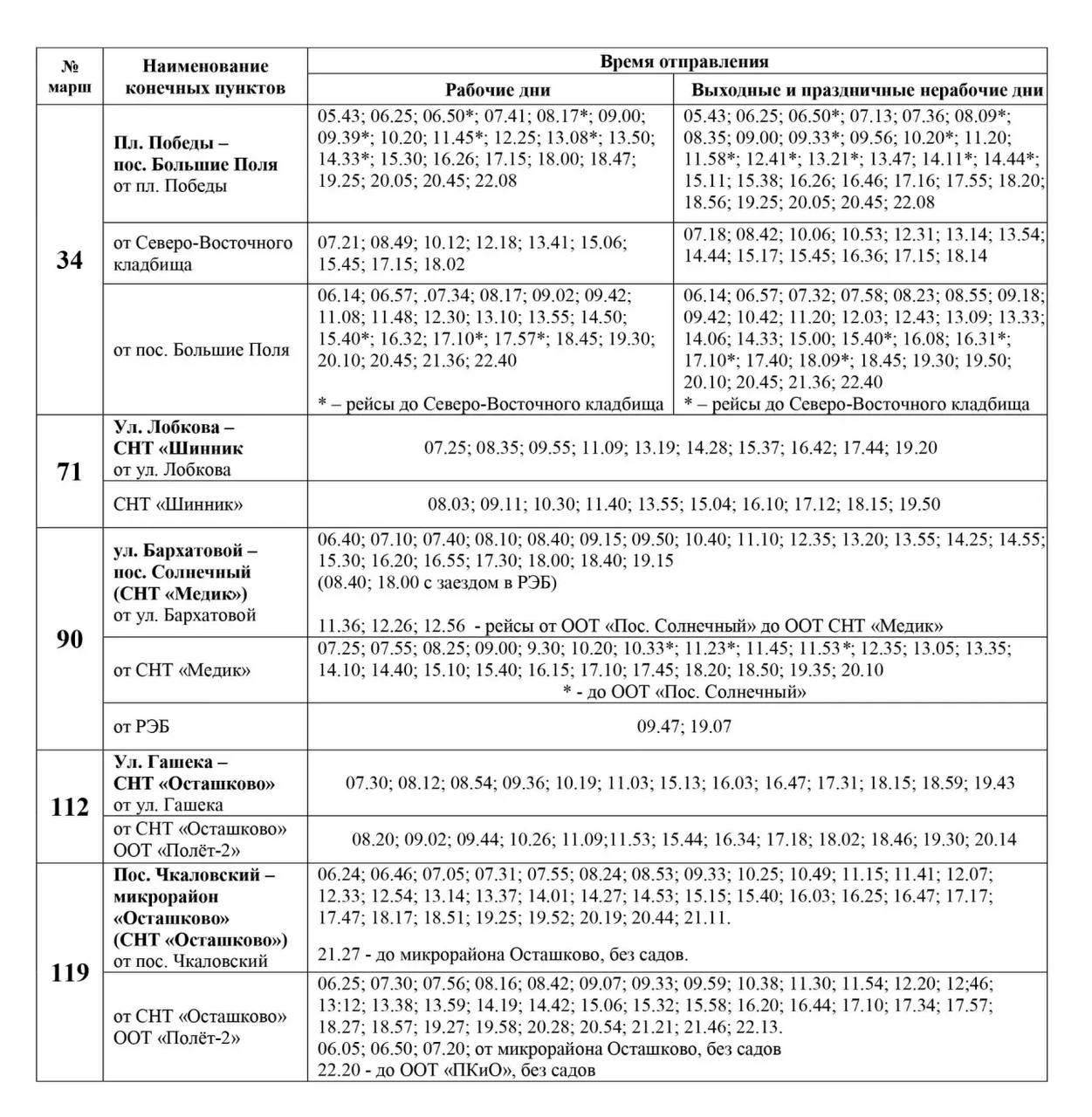 Расписание движения будет меняться в зависимости от сезона. В межсезонье (1–17 мая, 1–30 сентября и 1–18 октября) автобусы будут ходить три раза в неделю и в праздничные нерабочие дни, а в октябре - только по выходным.