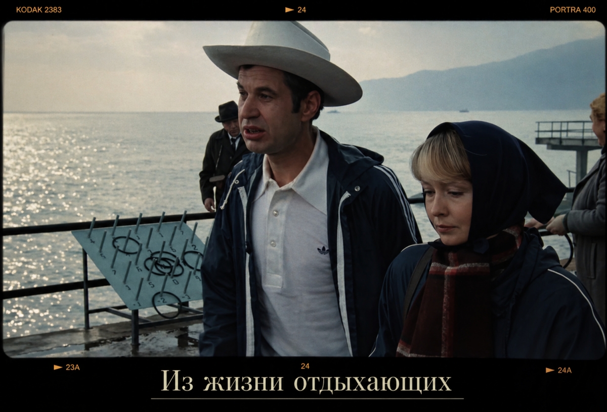 Выбирая фильм об отпуске, я просто растерялась, ведь их очень много и все они яркие, интересные, разные – обо всех хочется рассказать. Например, в фильме «Любовь и голуби» главный герой Василий отправляется в отпуск на юг и там случается его роковая встреча с разлучницей Раисой Захаровной. Герой Андрея Миронова в фильме «Будьте моим мужем» выступил в образе детского врача, который в отпуске встретил взбалмошную женщину с ребенком и сыграл роль ее мужа так, что после отпуска действительно стал супругом. Есть еще ряд фильмов: «Дамы приглашают кавалеров», о котором я уже писала, «Отпуск за свой счет» с блистательным Игорем Костолевским, «Дама с попугаем», где мне запомнился Алексей Жарков. Но я решила взять не очень популярный и, так скажем, не очень популярный фильм «Из жизни отдыхающих» 1980 года, и вот почему.
